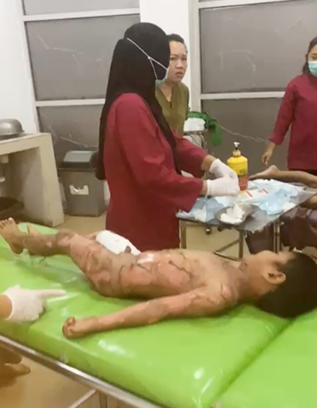 Akibat kejadian tersebut, korban mengalami luka robek pada bagian alis serta memar pada mata sebelah kanan. Anak-anak korban mengalami luka bakar akibat siraman air panas.