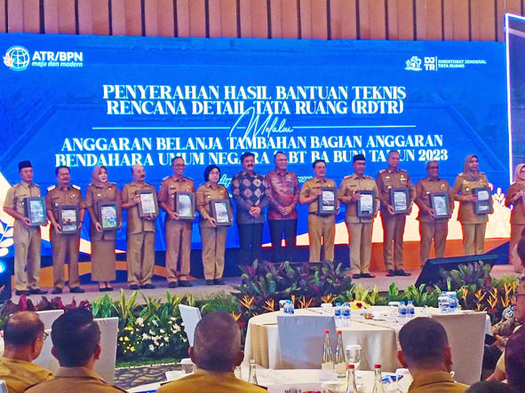 TNO, JAKARTA – Bupati Luwu, Dr. Drs. Basmin Mattayang, M.Pd, secara resmi menerima bantuan teknis Rencana Detail Tata Ruang (RDTR) dari Kementerian Agraria dan Tata Ruang/Badan Pertanahan Nasional (ATR/BPN) di Sheraton Grand Jakarta Gandaria City Hotel, Kebayoran Lama-Jakarta Selatan, Rabu 10 Januari 2024.