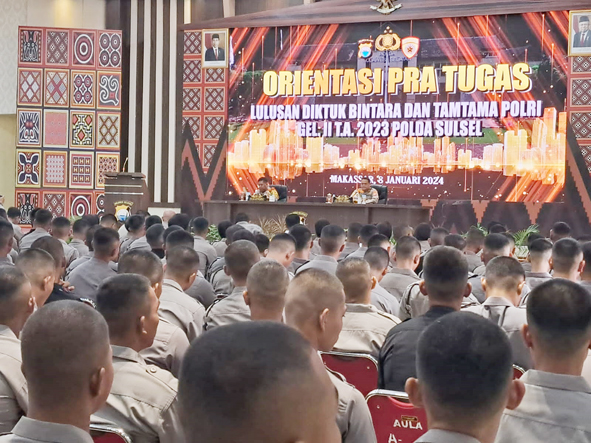 Arahan Karo SDM Polda Sulsel tersebut disampaikannya pada acara pembukaan Orientasi Pra Tugas Lulusan Bintara dan Tamtama TA. 2023 berrempat di Aula Andi Mappaoddang Mapolda Sulsel, Senin (8/1/2024).