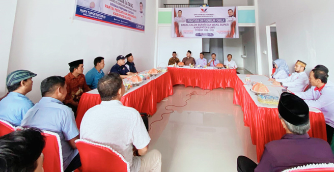 TNO, BELOPA LUWU – Arham Basmin Mattayang (ABM) dan Rahmat Kapten mengembalikan Formulir Pendaftaran sebagai Bakal Calon (Balon) Bupati dan Wakil Bupati Luwu untuk Pemilihan Kepala Daerah (Pilkada) di Partai Demokrasi Indonesia Perjuangan (PDI-P), Senin, 13 Mei 2024.