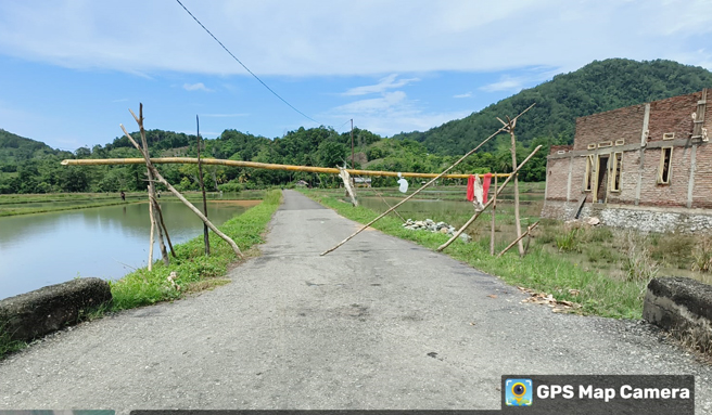 Akses jalan yang ditutup warga berada di Desa Tallang Bulawang, Kecamatan Bajo. Jalan tersebut merupakan akses utama menuju TPA. Jalan ditutup menggunakan portal bambu.
