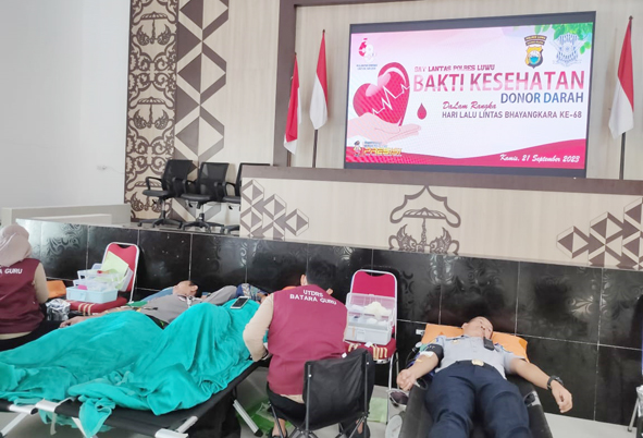 Dalam giat donor darah yang dilaksanakan satlantas polres luwu, bukan hanya personil polres luwu namun juga dari instansi terkait serta masyarakat umum, dengan jumlah pendonor yang mendaftar sebanyak 70 orang, dan hanya 31 orang yang memenuhi syarat untuk mendonor selebihnya tidak ikut donor dikarenakan faktor kesehatan tidak mendukung.