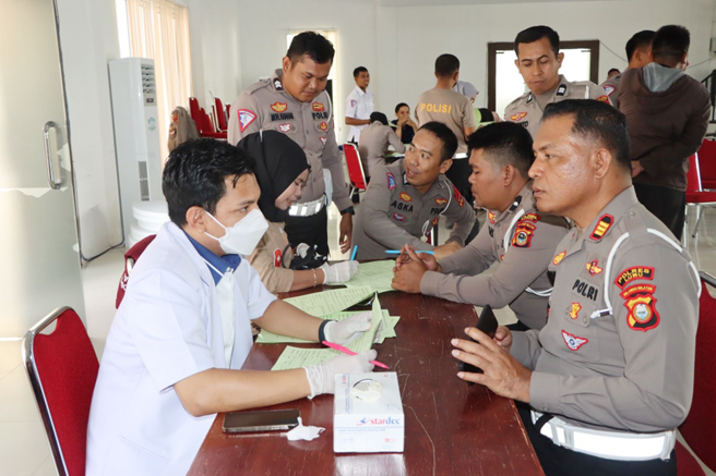 Sebelum pelaksanaan kegiatan donor darah, setiap personil terlebih dahulu diperiksa kondisi kesehatannya, mulai dari pengisian formulir pemeriksaan tensi darah, dan HB (Hemoglobin).