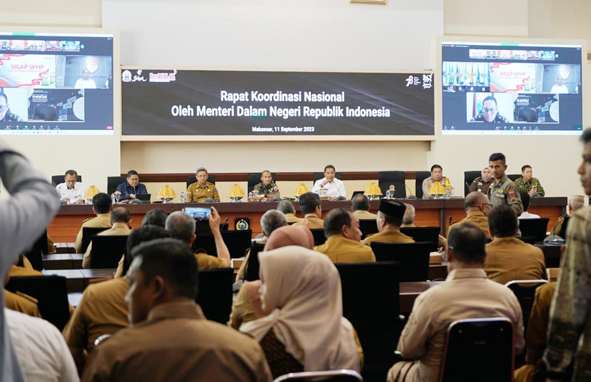 Rakornas TPID yang dilaksanakan secara Virtual di ruang Rapat Pimpinan Kantor Gubernur Sulsel di hadiri langsung oleh Penjabat Gubernur Sulsel, Bahtiar Baharuddin, bersama Kepala Daerah se-Sulsel. Dalam rakornas, Mendagri, Tito Karnavian, mengungkapkan berbagai upaya-upaya yang dilakukan pemerintah cukup mampu mengendalikan inflasi secara nasional. “Pada bulan Agustus 2023, inflasi nasional tercatat 3,27. Inflasi bisa kita imbangi dengan gerakan pangan dan menyediakan cadangan stok beras pemerintah” Terang Tito dalam pidatonya.