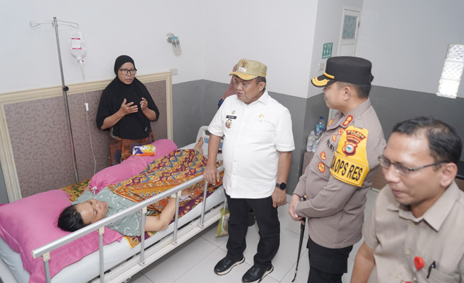 TNO, PALOPO – Penjabat Bupati Luwu, Drs. Muh. Saleh, M.Si, menjenguk Korban Tanah Longsor poros Desa Bonglo yang tengah dirawat di Rumah Sakit Umum (RSU) At Medika Kota Palopo, Rabu, 28 Februari 2024.