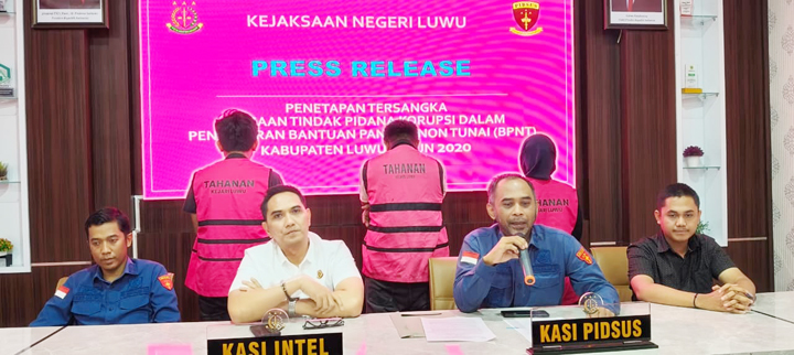 TNO, BELOPA LUWU – Tim Penyidik Tindak Pidana Khusus (Tipikor) Kejaksaan Negeri Luwu resmi menetapkan dan menahan tiga (3) tersangka dalam perkara Dugaan Tindak Pidana Korupsi penyaluran BPNT (Bantuan Pangan Non Tunai) Kabupaten Luwu Tahun 2020.