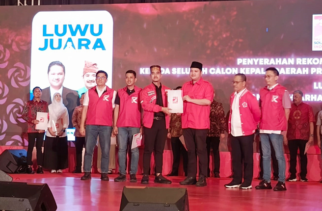 TNO, MAKASSAR – Ketua Umum Partai Solidaritas Indonesia (PSI), Kaesang Pangarep secara langsung menyerahkan Rekomendasi dukungan kepada Pasangan Bakal Calon Kepala Daerah (Cakada). Diantaranya yaitu pasangan Bakal Calon Bupati dan Wakil Bupati, Arham Basmin Mattayang (ABM)-Rahmat, untuk Pilkada Luwu 2024.