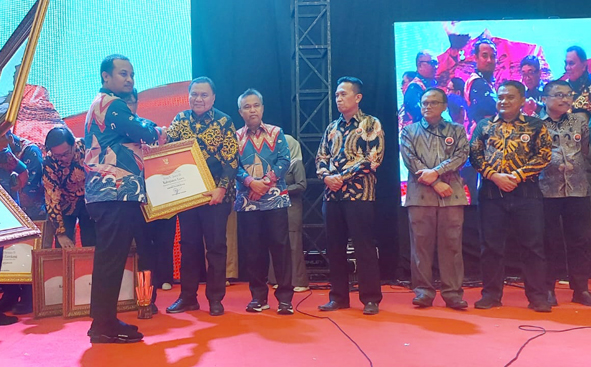 Piagam Penghargaan Pembangunan Daerah (PPD) Tahun 2023 diserahkan langsung oleh Gubernur Sulawesi Selatan, Andi Sudirman Sulaiman, kepada Sekretaris Daerah Kabupaten Luwu, Drs Sulaiman, MM.