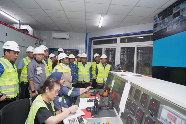 Usai pertemuan, rombongan berkesempatan untuk memasuki area pabrik untuk melihat proses kerja produksi nikel.