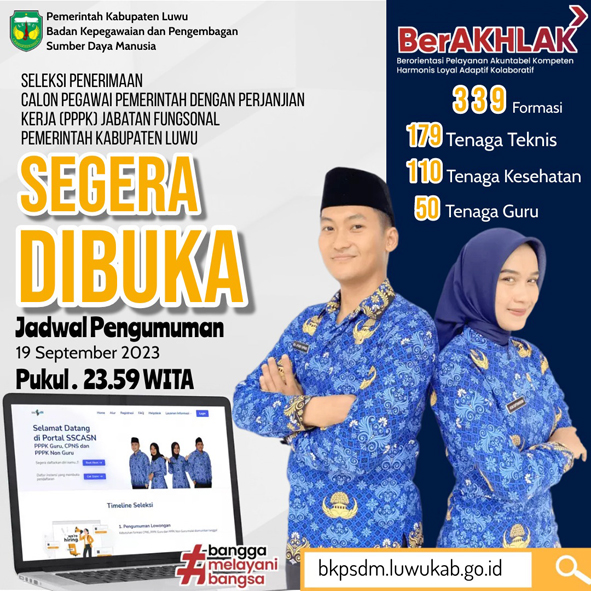 TNO, BELOPA LUWU- Pemerintah Kabupaten Luwu melalui Badan Kepegawaian dan Pemberdayaan Sumber Daya Manusia (BKPSDM) secara resmi mengumumkan Seleksi Pengadaan Pegawai Pemerintah dengan Perjanjian Kerja (PPPK).