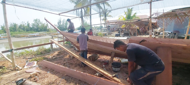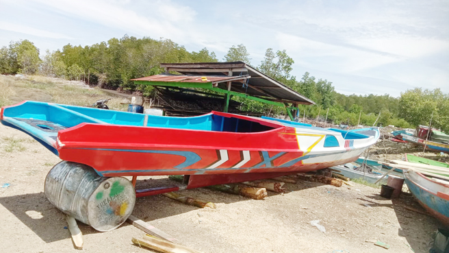 Tampak kapal fiber yang dikerjakan di Batu Lotong.