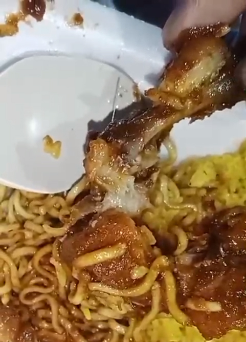 Diduga, ayam yang digunakan dalam menu tersebut sudah dalam kondisi busuk namun tetap dimasak dan disajikan.