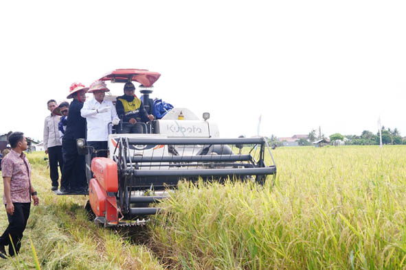 Secara simbolis, Basmin Mattayang, melakukan pemotongan padi bersama Kepala Dinas Pertanian drh. Jumardin, Kepala Dinas Ketahanan Pangan Andi Makkawaru, Ketua KTNA Kabupaten Luwu, Dahsan Lubis, dan Forkopimcam Suli dengan menggunakan combine harvester.