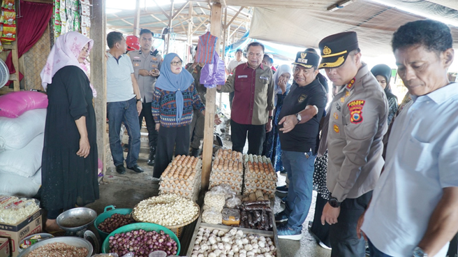 Dalam kunjungannya, Muh Saleh bersama Kapolres Luwu secara langsung berdialog dengan para pedagang di pasar dan memeriksa harga bahan pokok untuk memastikan ketersediaan dan stabilitas harga di pasaran.
