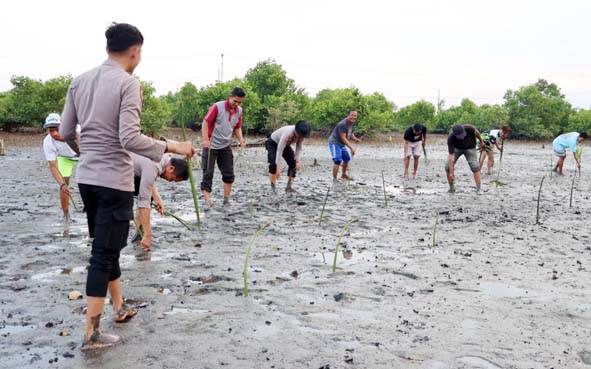 Sebanyak 231 bibit pohon mangrove yang ditanam dan dipimpin langsung Kasat Samapta Polres Luwu, AKP Py Catur Suhendra, SH bersama personil Polres Luwu beserta masyarakat setempat.