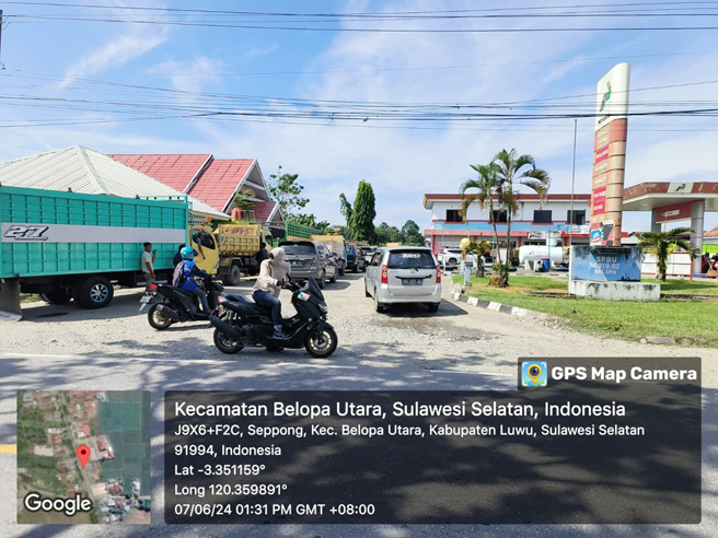 TNO, BELOPA LUWU – Kelangkaan Bahan Bakar Minyak (BBM) jenis Solar kembali terjadi di Kabupaten Luwu, Sulawesi Selatan. Hal ini disebabkan karena para pelangsir Solar mulai marak lagi di Stasiun Pengisian Bahan Umum (SPBU) sehingga membuat BBM Solar cepat habis yang mengakibatkan pada kelangkaan. Belopa, Senin, 17 Juni 2024.