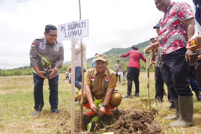 Pj Bupati Luwu sebelumnya melakukan Penanaman Pohon Sukun di Dusun Labokke, Desa Puty, Kecamatan Bua, Kabupaten Luwu, Kamis, 29 Februari 2024.