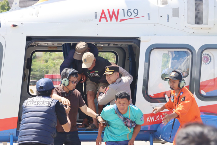 Evakuasi dilakukan di 4 lokasi yang berbeda, diantaranya Desa Tibbusan, Desa Buntu Sarek, Desa Pangi dan Desa Pajang. Sebanyak 20 warga di Latimojong tersebut berhasil dievakuasi dengan menggunakan Helikopter AW 169 milik Baharkam Polri.