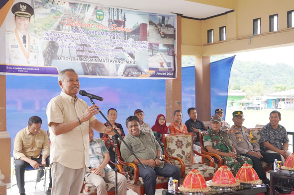 Basmin menjelaskan pembangunan yang telah diresmikannya atas kolaborasi Dinas Pekerjaan Umum dan Tata Ruang (PUTR) bersama Dinas Perumahan dan Kawasan Permukiman (Perkim) Kabupaten Luwu.
