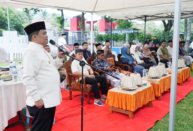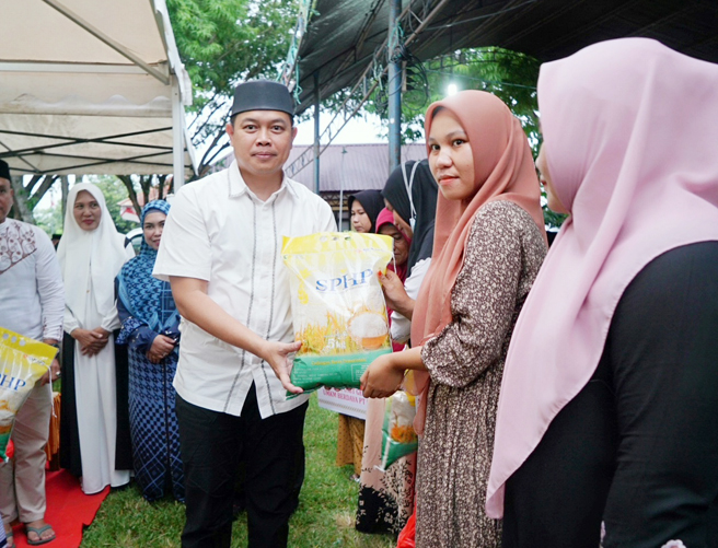Pj. Bupati Luwu, Drs. Muh. Saleh, M.Si, bersama Ketua TP-PKK Kabupaten Luwu Aisyah, mengawali kegiatan Safari Ramadhan di Kecamatan Bajo, Selasa. 19 Maret 2024.