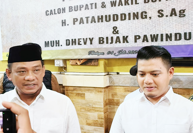 Dalam jumpa pers, Patahuddin yang akrab di sapa pendukungnya dengan sebutan Pata, mengungkapkan dirinya memohon doa restu seluruh masyarakat kabupaten Luwu untuk maju di Pilkada Luwu 2024 berpasangan dengan anggota DPR RI fraksi Demokrat, putra mendiang Syukur Bijak, Muhammad Dhevy Bijak Pawindu. “Pilkada adalah perhelatan politik. di dalam politik itu hanya dua konsekuensi, menang atau kalah. Dan saya ingin menang di Pilkada Luwu 2024 ini, setelah melakukan proses sosialisasi dan meminta pendapat masyarakat, saya menemukan bakal calon Wakil Bupati Luwu yang akan mendampingi saya, yaitu Bapak Muhammad Dhevy Bijak Pawindu. Beliau bukan hanya sosok yang pintar tapi figur yang komitmen. Insha Allah bersama beliau kami siap untuk maju untuk menang demi mewujudkan pelayanan kepada masyarakat” Ungkap Patahuddin.