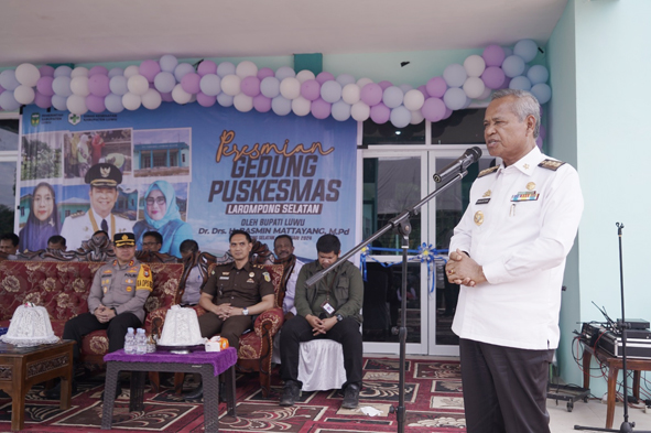 TNO, LARSEL LUWU – Bupati Luwu, Dr. Drs. Basmin Mattayang, M.Pd, meresmikan Gedung Baru Puskesmas Larompong Selatan yang terletak di Desa Sampano Kecamatan Larompong Selatan, Rabu 24 Januari 2024.