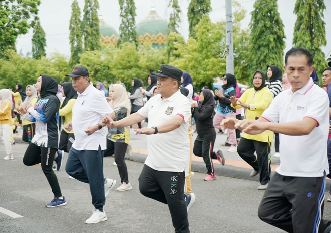 Pj. Bupati Luwu, turut berbaur di tengah masyarakat melakukan Senam Kebugaran. Pj. Bupati, didampingi Sekda, Drs. Sulaiman, MM, para Kepala OPD, dan jajaran pemerintah kabupaten Luwu.