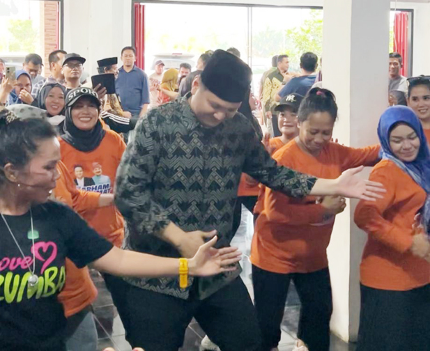 Kehadiran calon Bupati dan Wakil Bupati, ABM-Rahmat di Posko Pemenangan itu membuat suasana Zumba semakin ceriah.