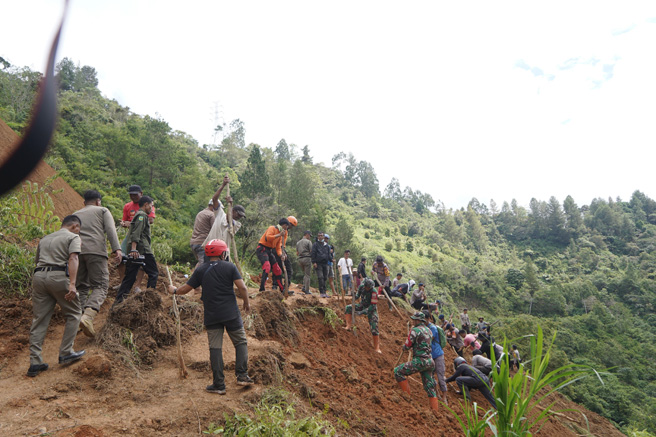 Ia pun menambahkan bahwa tim evakuasi menduga masih ada korban lainnya tertimbun tanah di karenakan menurut saksi ada 2 mobil yang tertimbun material longsor. “Barusan Posko tim relawan sudah kita bentuk. Kemudian perlengkapan evakuasi dan Dapur Umum juga sudah dikerahkan, termasuk 2 unit Alat Berat sudah ada di lokasi” Urai Muh Saleh.